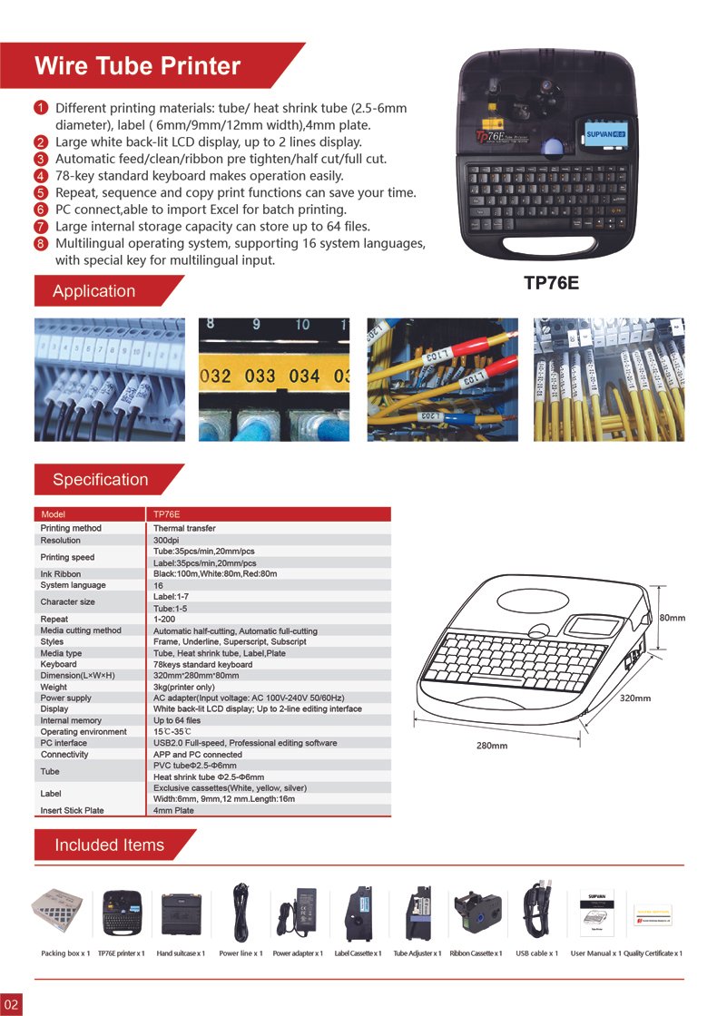 The SUPVAN TP76E is a professional-grade, high-speed ferrule printing machine designed for heavy-duty industrial marking. Known for its robust build and “all-in-one” functionality, it is a preferred choice for electrical engineers and switchboard manufacturers. The TP76E excels in creating permanent, clear identification for wires and cables using PVC tubes, heat-shrink sleeves, and self-adhesive labels. It offers the flexibility of standalone operation via its integrated keyboard or advanced batch printing through PC connectivity.
