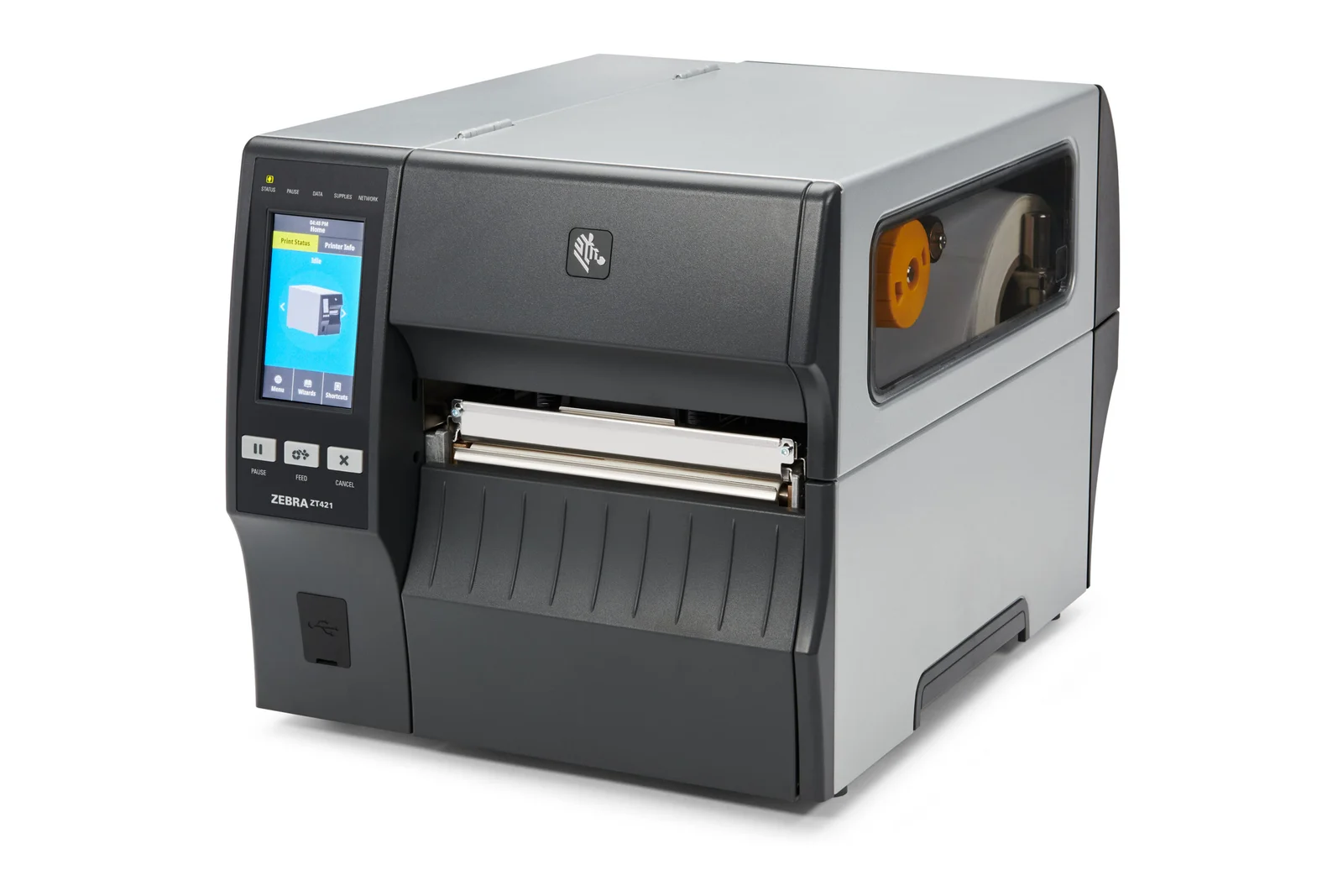 The Zebra ZT421 Barcode Printer is a robust industrial solution engineered for precision and durability in high-volume environments. Built with an all-metal frame and a user-friendly bi-fold door, the ZT421 simplifies media loading through its innovative side-loading supplies path, complete with color-coded guides and illuminated indicators for effortless setup—even in low-light conditions.
